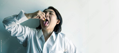 asian woman take taking vitamins and supplements