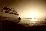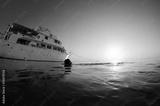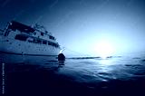 Diver swims back to boat after a nice dive.