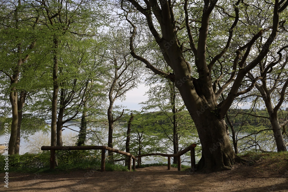 Beautiful forest with green plantations and trees under a cloudy sky in Hindsgavl, Middelfart