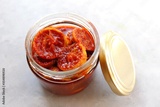 Indian traditional homemade sweet, tangy and spicy lemon pickle or limbu che lonche. also known as Nimbu ka Achar in hindi. recipe ingredients at background along with copy space.
