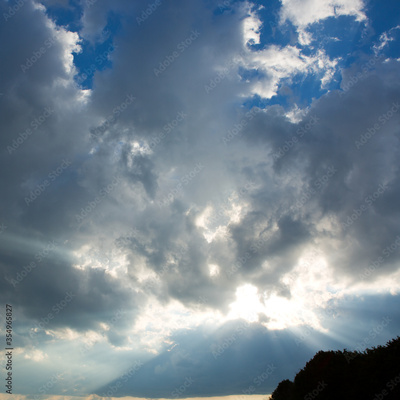 Blue sky with big clouds at sunset. Abstract background.