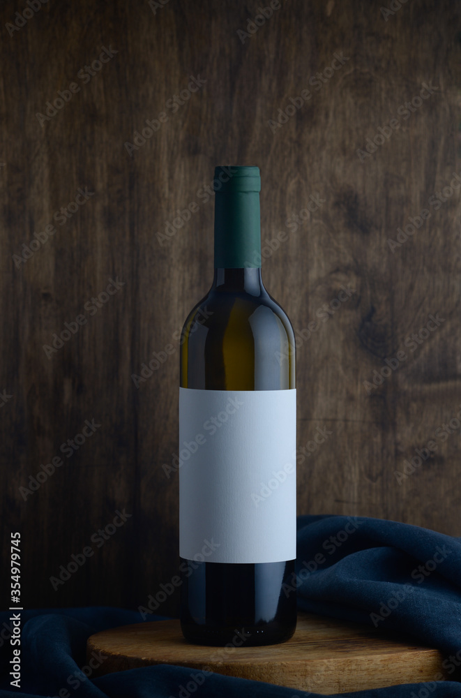 white wine bottle on wooden background