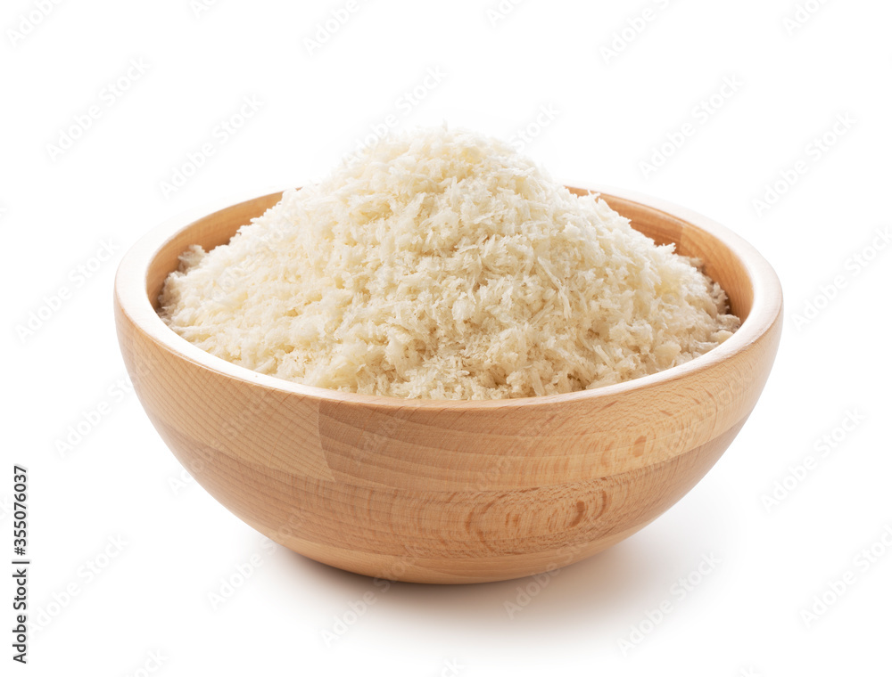 Crumbs placed on a white background.