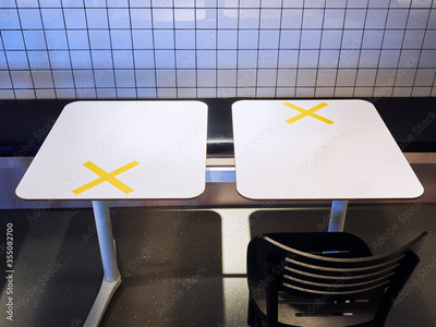 Social distancing concept marked for standing in queue Safety position New normal lifestyle