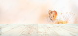 Beautiful nature view of butterfly and empty wood table on blurred background with copy space for product using as background natural animal landscape, fresh cover page, butterflies day concept.