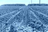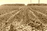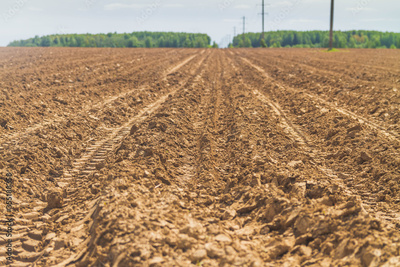 Fresh plowed field in Russia. Arable land in spring or autumn.