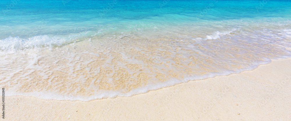 turquoise sea and soft waves surf on sandy beach, summer vacation on tropical island