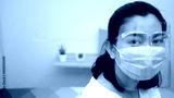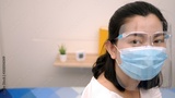 Portrait of an Asia young female who is wearing a face shield with mask rounded around her face from a frontal perspective to protect her glasses and eyes prepare to new normal. Coronavirus pandemic.
