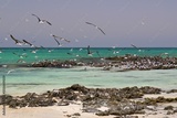 Beautiful and deserted beaches, the amazing waters of the Arabian Sea, super swimming in the sea can be enjoyed on the Oman Island of Masirah. The birds swim above the sea.Oman, Asia