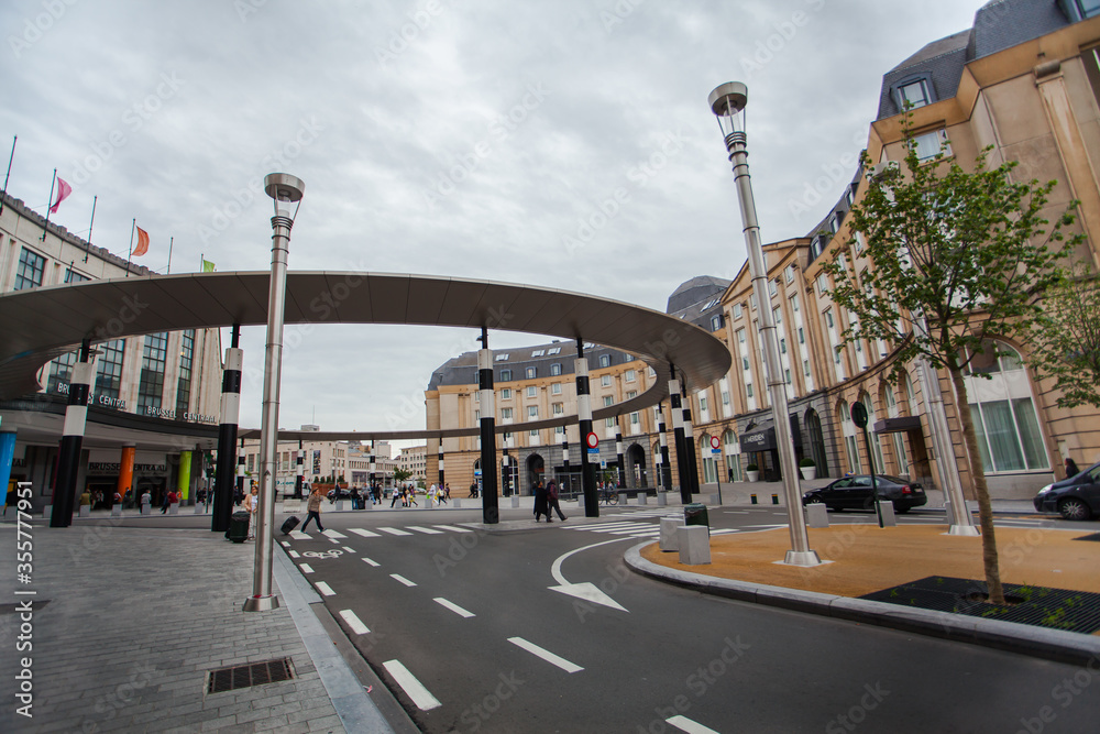 Architecture in front of Brussels Central Station railway and metro station in Brussels Belgium