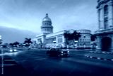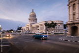 Old car on streets of Havana with Capitolio building in background. Cuba