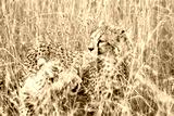 Cheetah cubs in the grass during safari at Serengeti National Park in Tanzania. Wild nature of Africa..