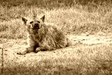Hyena in the grass during safari in National Park of Serengeti, Tanzania. Wild nature of Africa.