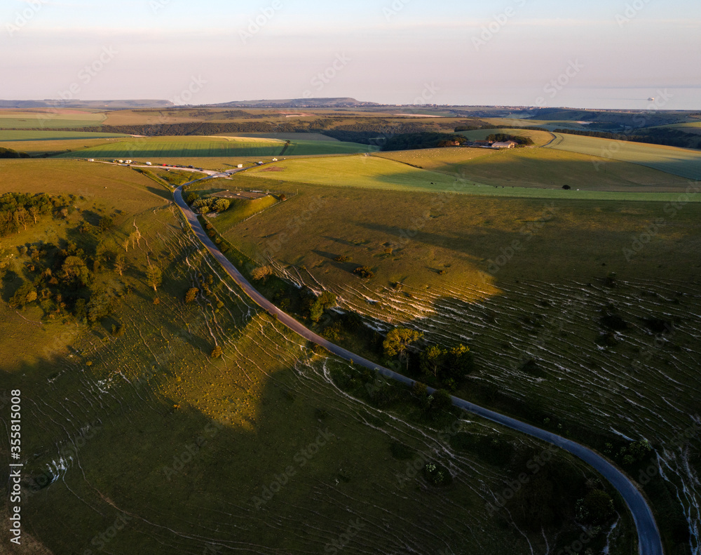 Beautiful drone landscape image over lush green Summer English countryside during late afternoon light