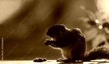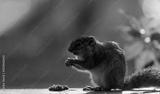 Wild african animals. Grey little squirrel eats sweet muffin.