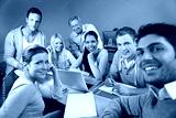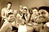 Glückliche Studenten mit Dozent