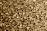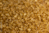 Close up of brown cane sugar crystals. Unrefined sugar obtained from sugar cane, without separating molasses and crystals. Color from golden to dark brown