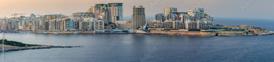 Malta. Panoramic view of the city and the bay at sunset.