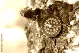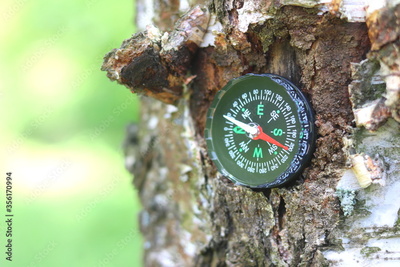 round compass on natural background as symbol of tourism, travel and outdoor activities