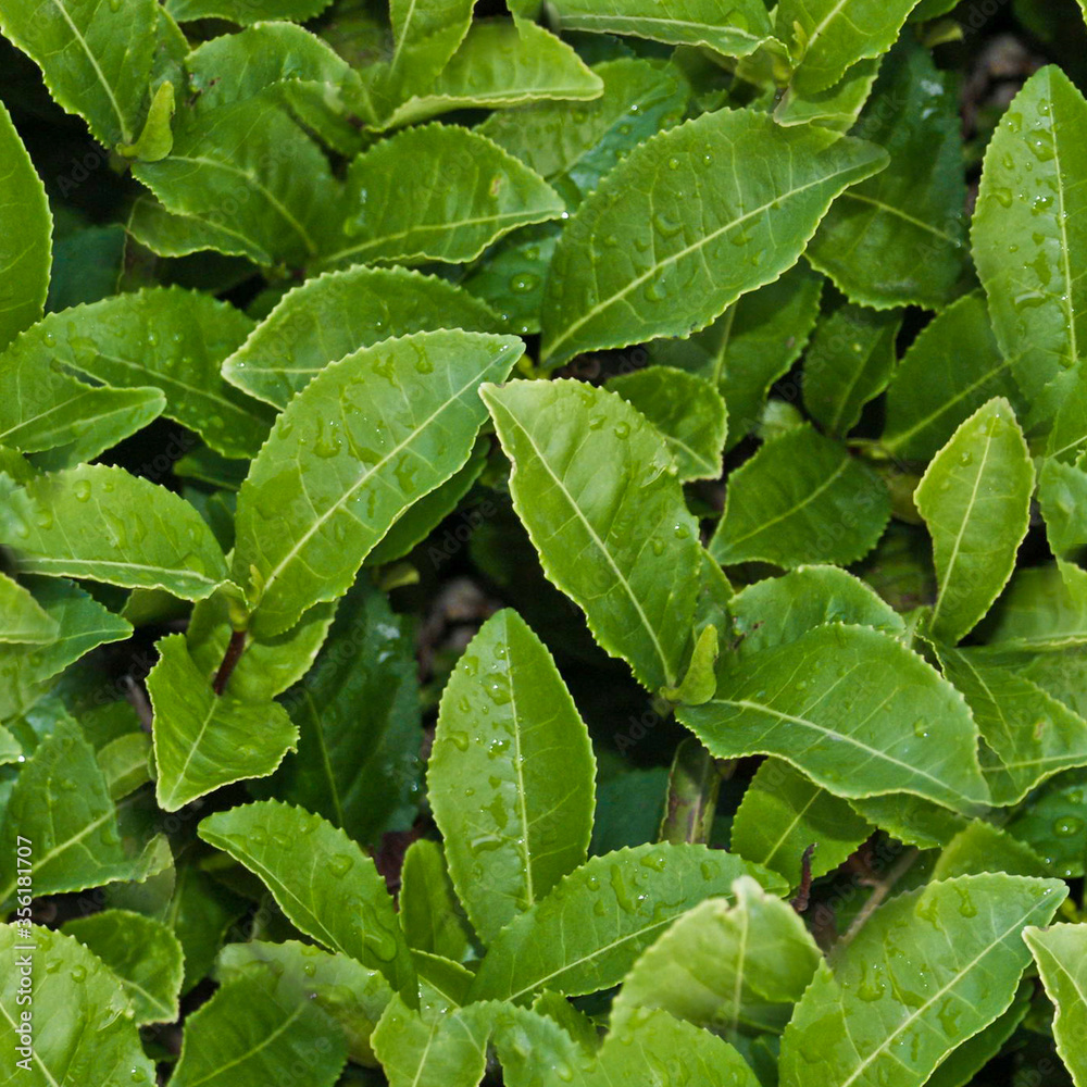 Green tea leaf seamless pattern. Natural background for design, template, web site backdrop.