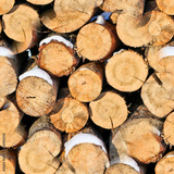 Sawn logs for firewood. A stack of logs. Sectional trees are tree rings. Natural background, wood texture.