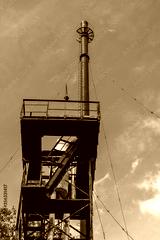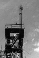 Old rusty abandoned tower with a pipe