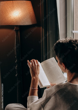 girl reading book bed evening weekend alone