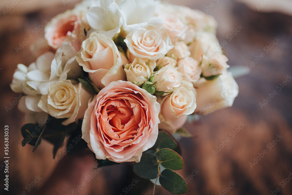 Wedding bridal bouquet of flowers and greenery