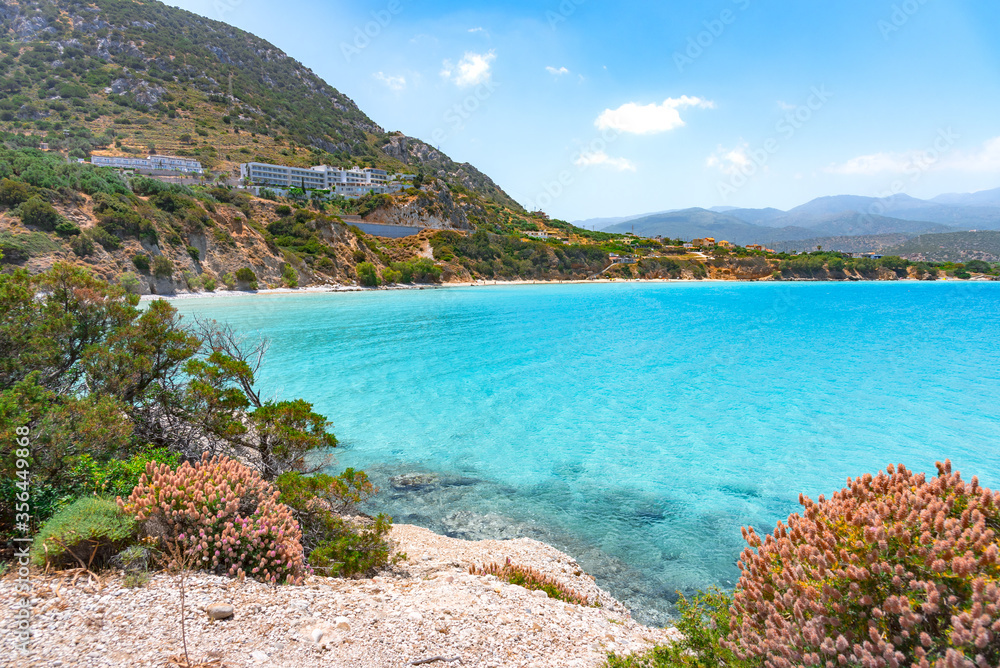 Tropical beach of Voulisma, Istron, Crete, Greece.