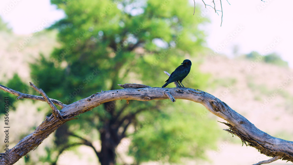black african bird sits on a branch and sings