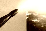 power washing the wall - cleaning the facade of the house - focus on the tip of the spray nozzle- shallow depth of field