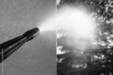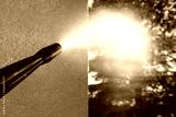 power washing the wall - cleaning the facade of the house - focus on the tip of the spray nozzle- shallow depth of field