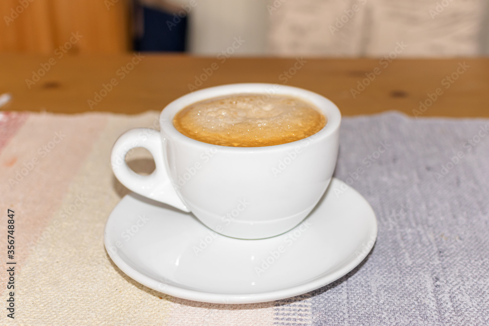 cup of coffee on wooden table