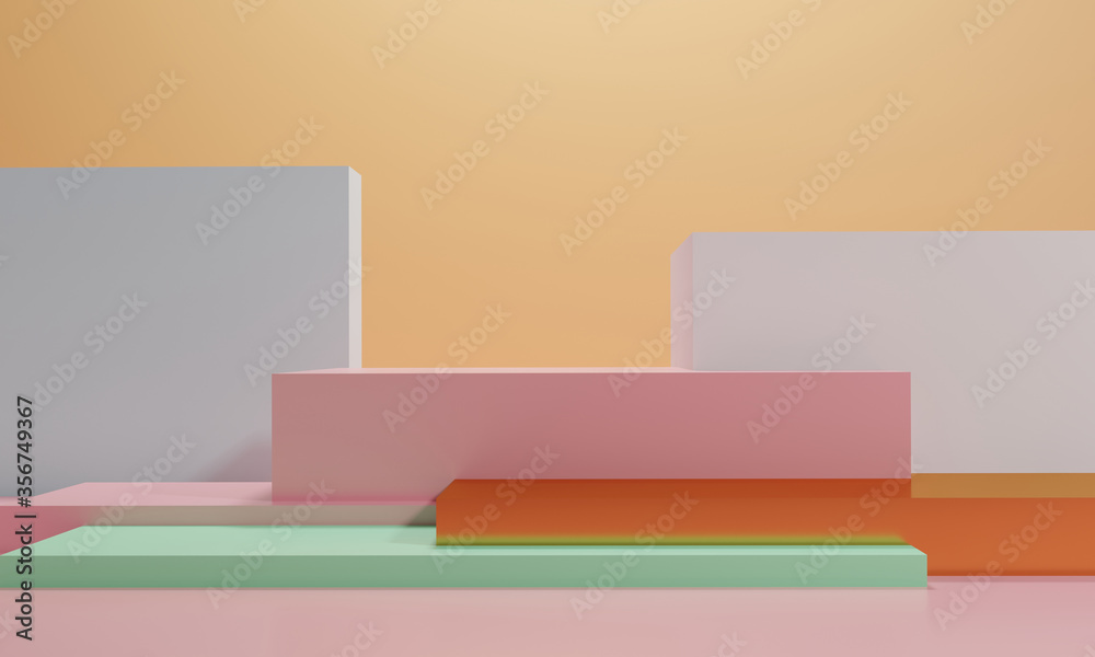 3d rendering illustration of background abstract pedestal board, art display mockup product decoration stand wallpaper