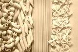 pasta background, several types of pasta close, durum wheat pasta collection, italian traditional raw pasta