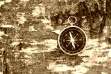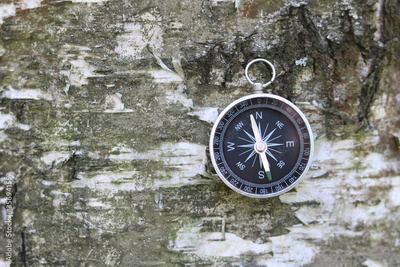 round compass on natural background as symbol of tourism, travel and outdoor activities