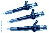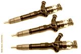 three New injector for the diesel engine on a white background. Spare parts for the car. Special toning