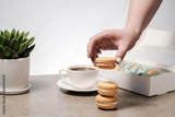 Whole Pack of Macarons on the Table with a Fragrant Coffee