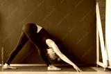 Sporty attractive young blond woman doing Pyramid Pose, Intense Side Stretch Posture, Parsvottanasana, studio full length isolated shot, profile view on pink background