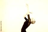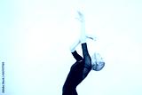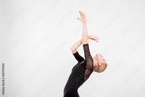 The concept of rhythmic gymnastics. Portrait of caucasian model at full height with fair hair