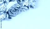 Beautiful pink rose and alstroemeria flowers in a corner on coral background