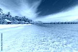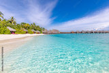 Perfect white sand beach and turquoise tropical ocean in Maldives. Luxury summer holiday and vacation vibes concept. Relax beach, tranquility and peaceful nature. Shore or coast in exotic island