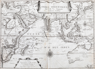 Old map of Indian Ocean - From an 1656 Atlas of Geography from P. du Val - France (Private collection)