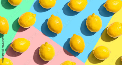 Fresh yellow lemons overhead view - flat lay