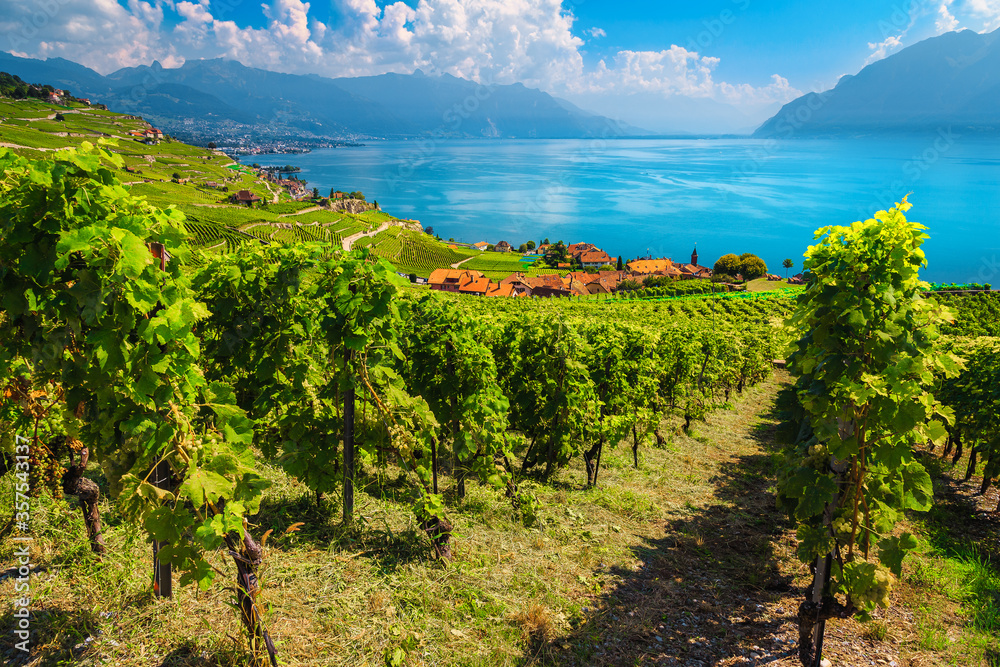 Terraced vineyards in Lavaux region near Chexbres village, Vaud, Switzerland