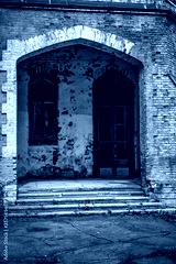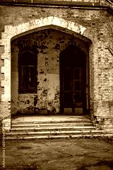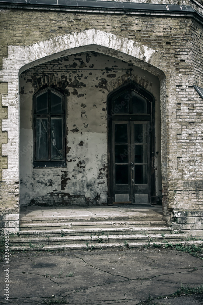 Entrance with door and window to an old abandoned house