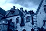 Roof view with windows of an old abandoned castle