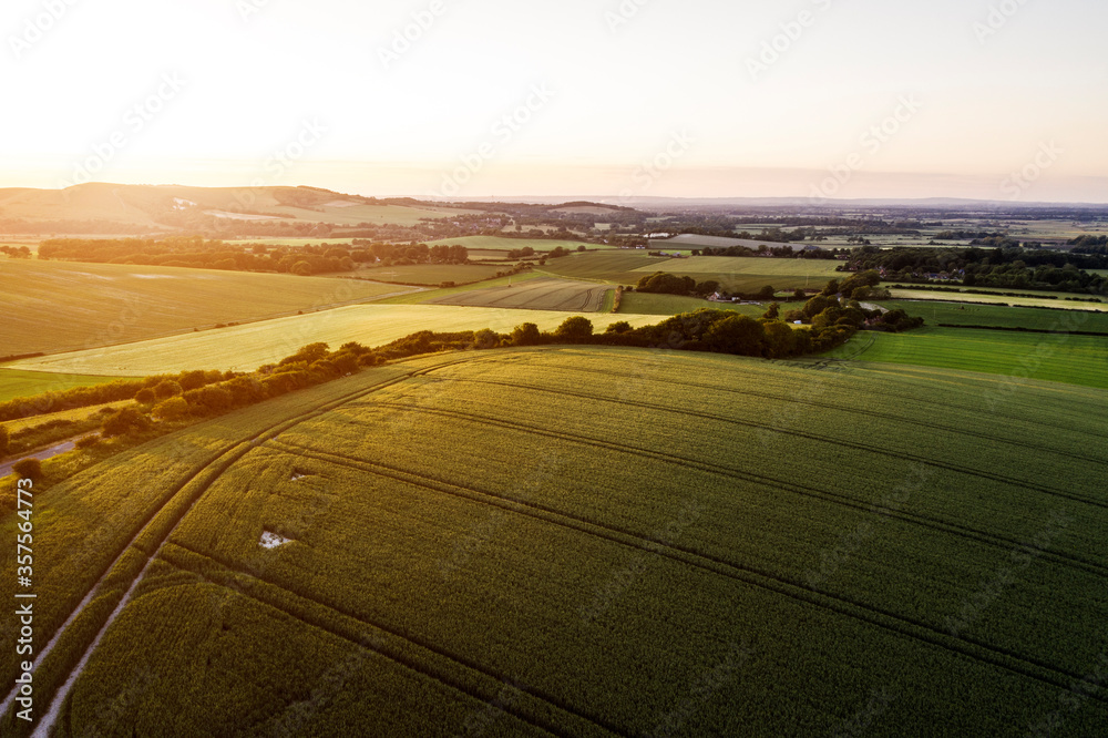 Beautiful drone landscape image over lush green Summer English countryside during late afternoon light