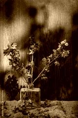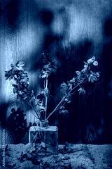 Romantic vintage retro look applied to flower and garden paraphenalia still life image with Spring and Summer seasonal blooms