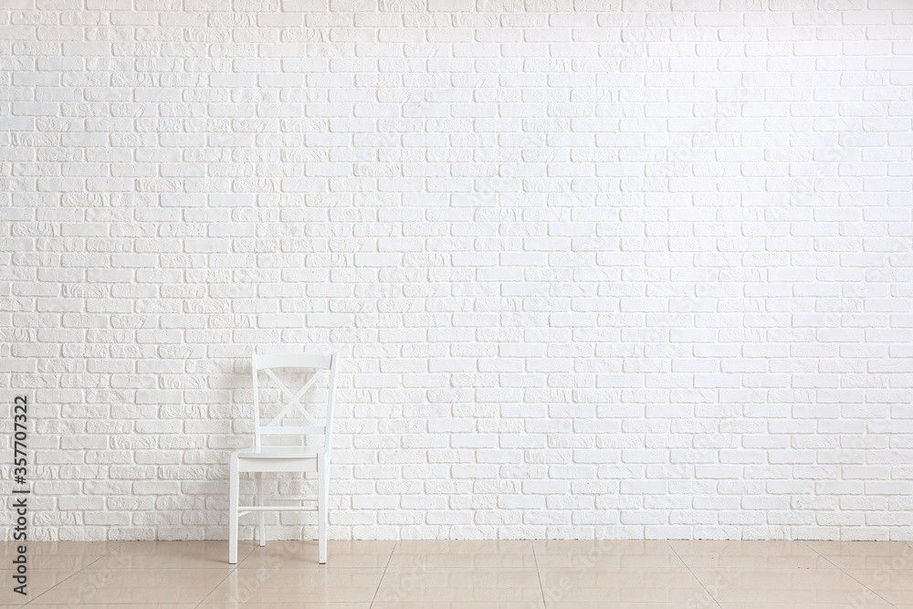 Chair near white brick wall in room